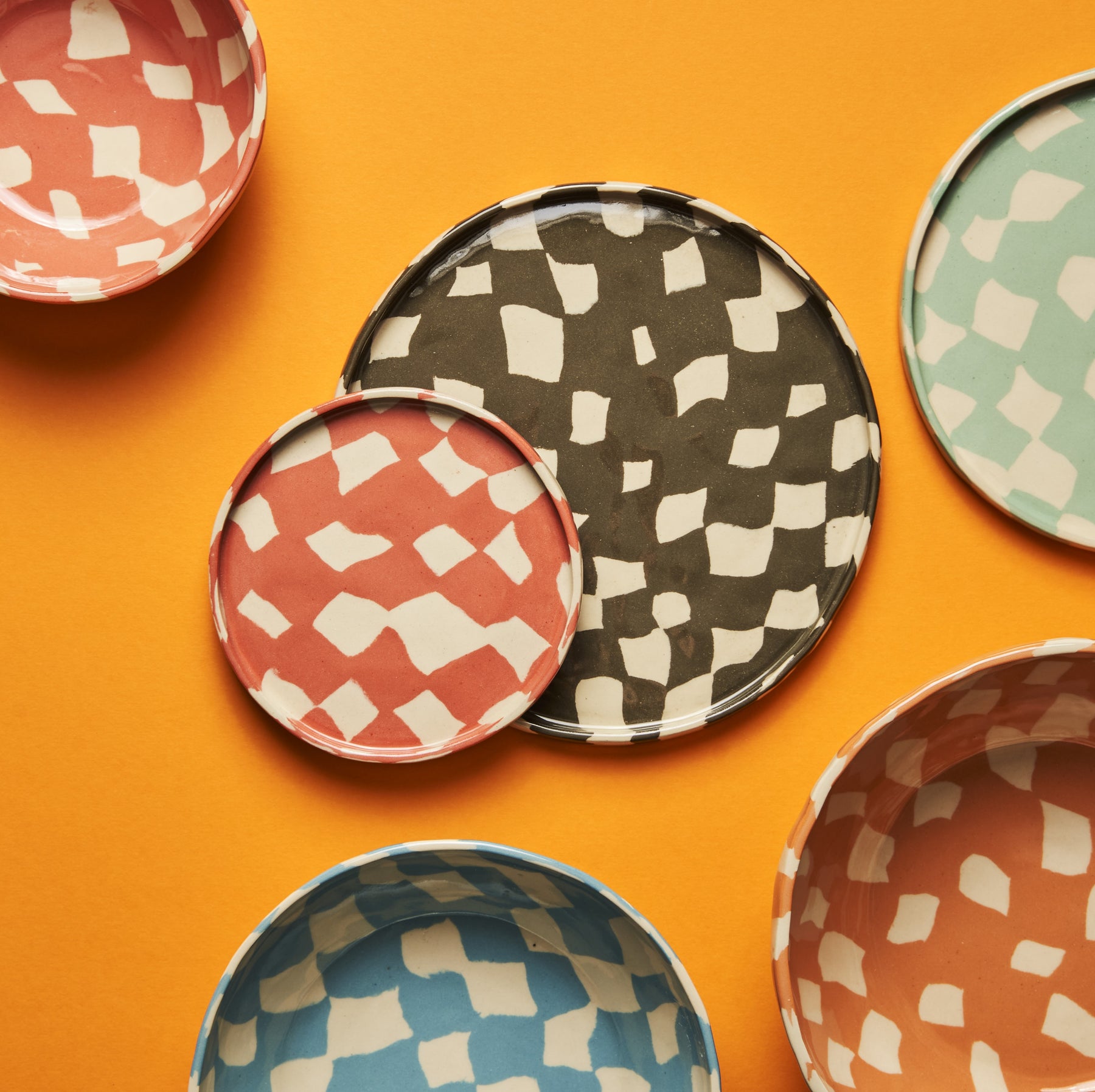 Lėkštė, lėkštelė, dubuo, dubenėlis. Visko – po truputį. Margi, švelniai žalsvi, melsvi, rausvi šachmatiniai dizainai gal ir nėra tobulai apskriti, bet jaukūs, gražesni, žavesni.