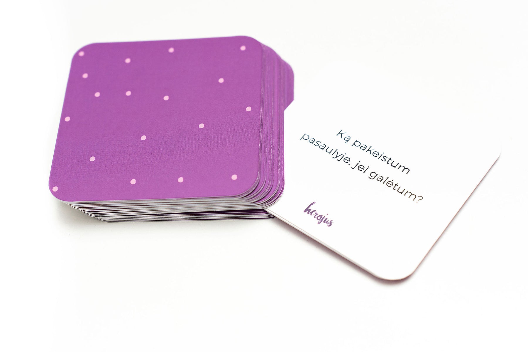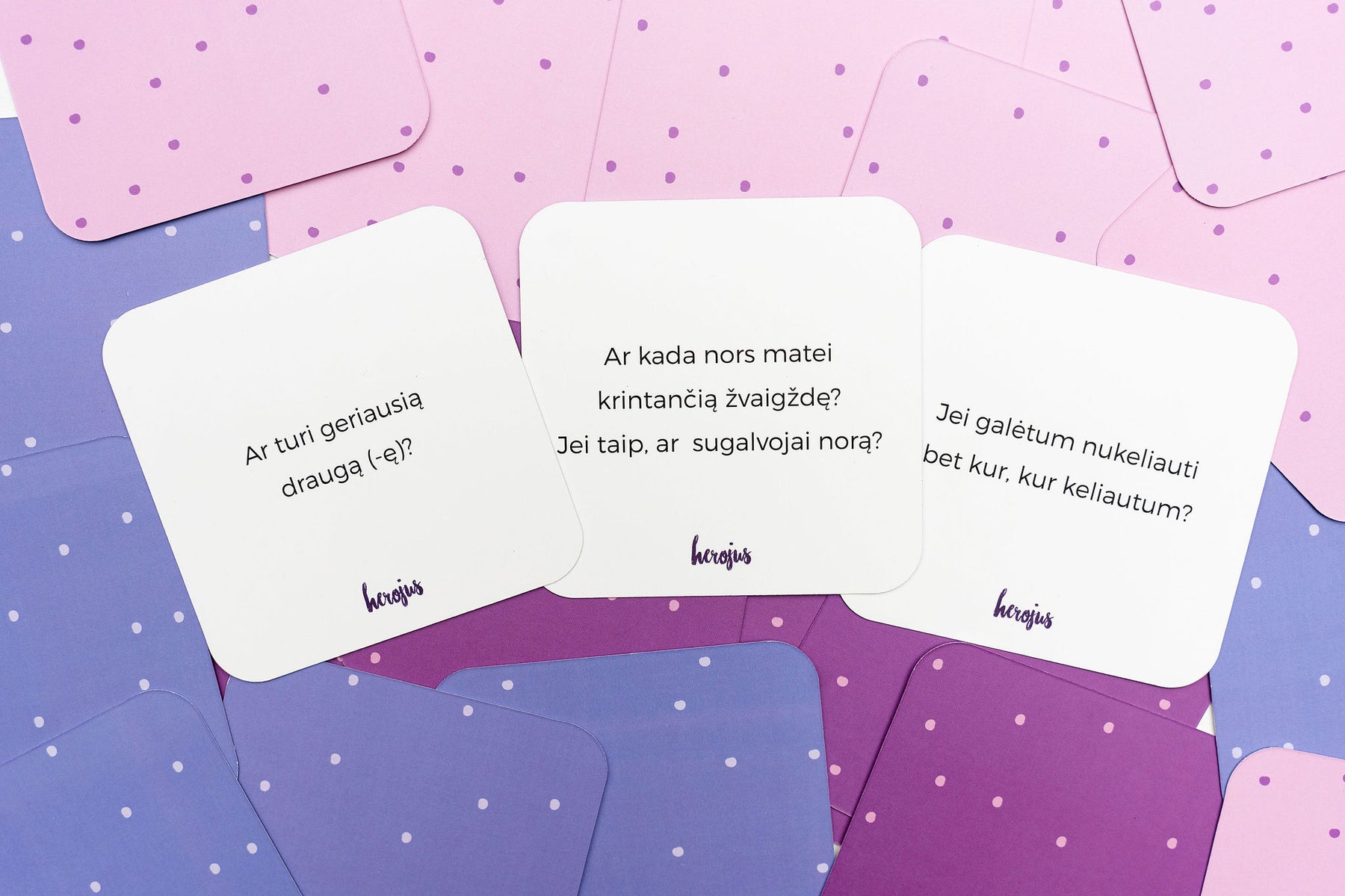 „Ryšio megztinis“ pokalbių kortelės – tai Herojaus mokytojų sukurtas ir išbandytas žaidimas skirtas ryšiui su vaikais megzti ir sutvirtinti. Jis puikiai tinka tėvams, mokytojams ir kitiems specialistams, kurie turi santykį ar dirba su vaikais.